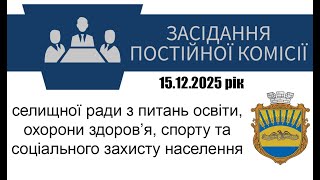Засідання постійної комісії селищної ради з питань освіти, охорони здоров’я, спорту та соціального захисту населення 15.12.2025 року