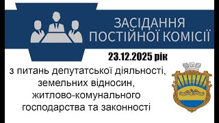 Засідання постійної комісії селищної ради з питань депутатської діяльності, земельних відносин, житлово-комунального господарства та законності 23.12.2025 року